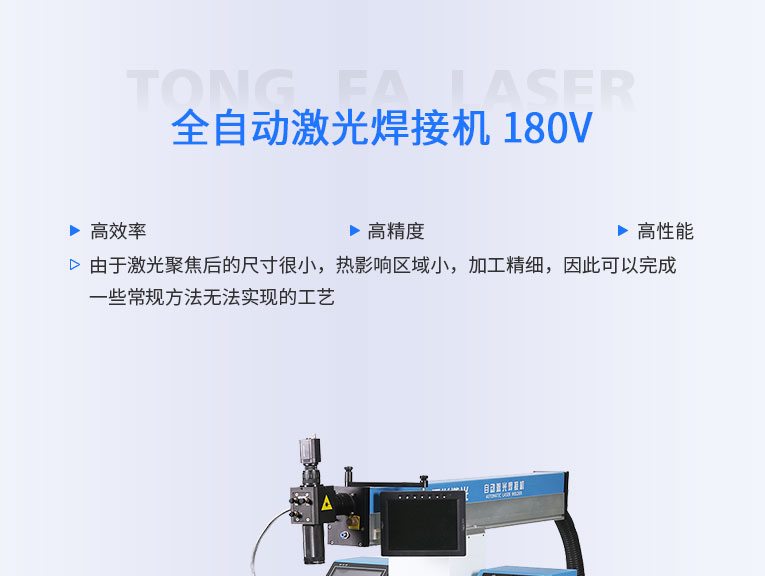 通發(fā)激光TFL-300V全自動(dòng)激光焊接機(jī),廣泛適用各種不銹鋼五金的激光焊接。可實(shí)現(xiàn)大多數(shù)0.8mm以內(nèi)料厚五金產(chǎn)品的二維平面焊接。效率高,性能穩(wěn)定,性價(jià)比高。配置精密運(yùn)動(dòng)控制器和工作臺(tái)高速運(yùn)動(dòng)實(shí)現(xiàn)焊接。